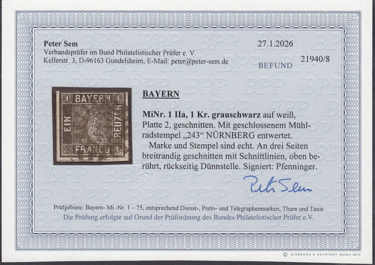 1 Kreuzer schwarzgrau bis grauschw. 1849, . Fotoattest Sem BPP Mängel bitte lesen. Michel 3500,00 Sie bekommen den abgebildeten Artikel