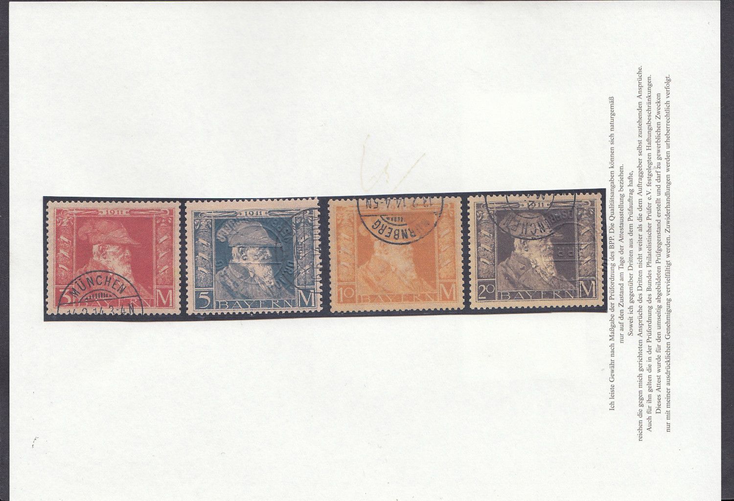 1911, 3 Pfg. - 20 M. Prinz Luitpold in Type II, einige kleine werte Type I 76-85 nicht bestimmt gestempelt, 6 Werte (86-91 II geprüft mit Attest, gute Qualität (ME 1.200,-) Sie erhalten den abgebildeten Artikel
