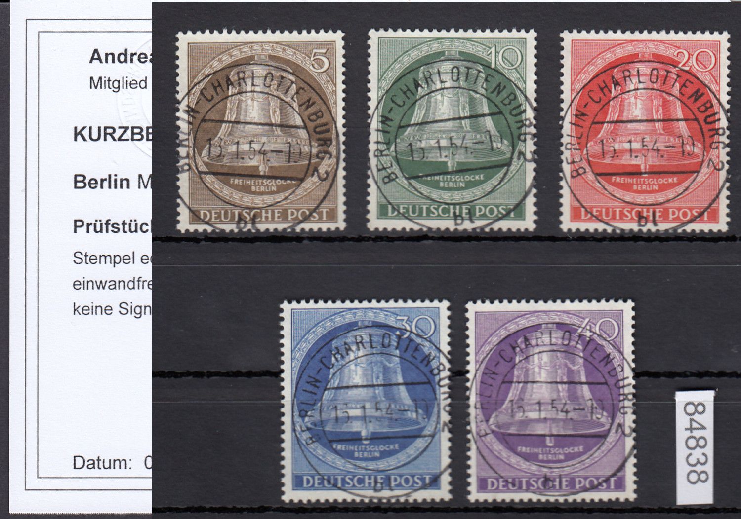 Glocke Mitte komplett mit vollen Versandstellenstempeln bl, , Befund Schlegel
