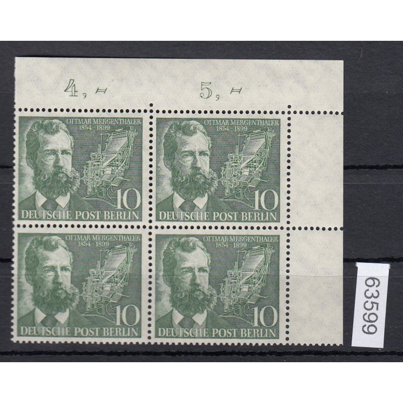 Berlin 1954, Mich.-Nr.: 117 ** Eckrand 4er,-Block