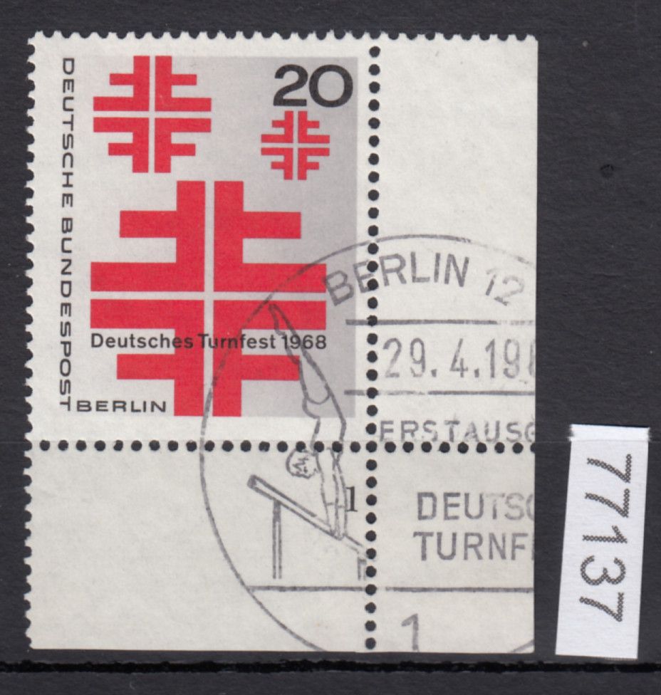 Berlin 1968, Mich.-Nr.: 321 gestempelt  Eckrand  FN 1   Ersttag