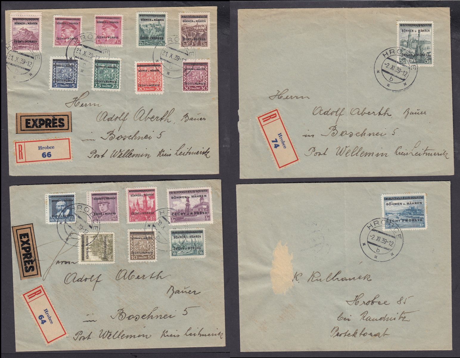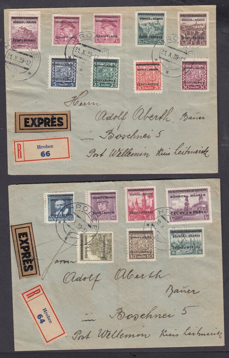 Böhmen und Mähren, Mi.-Nr. 1-19 gest auf Brief  (ohne 16)