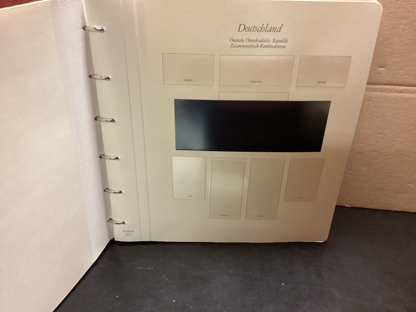 Sehr günstige Alben der Firma Borek.2 Alben mit Vordrucken ohne Marken.Zusammendrucke 1959-90. Jahrgang 1978 bis 1981 und Seite 54 fehlt. Sie erhalten den abgebildeten Artikel.