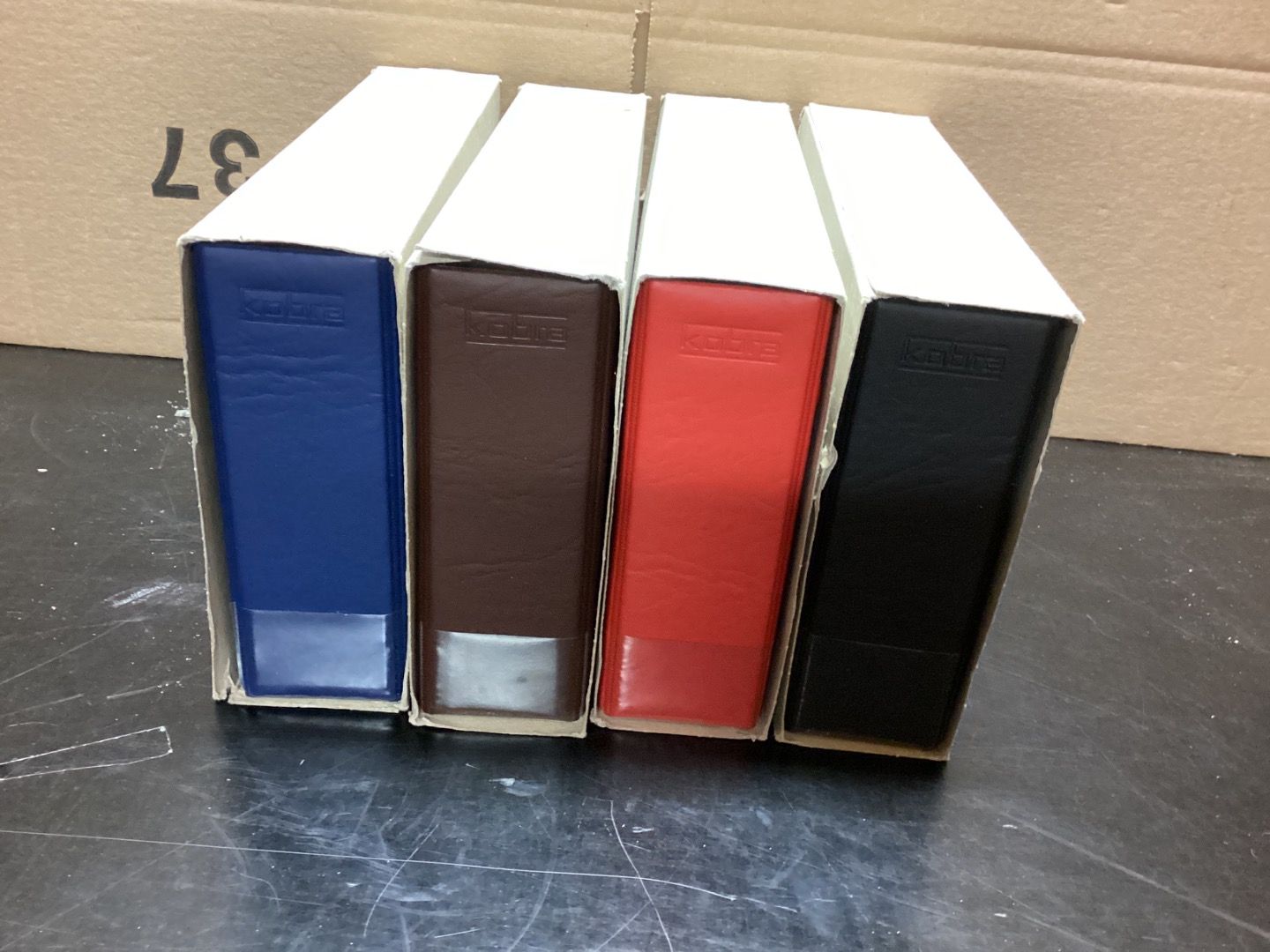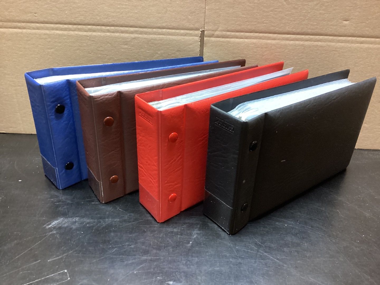 Kleines Album für normale Briefe mit klaren Taschen aus Folie mit schwarzen Kartonzwischenblatt. Einband aus Kunststoff mit Druckknopfverschluss. Klarsichtfenster im Albumrücken zur Bezeichnung/ Beschriftung der Alben. 4 Stück .Gut erhalten mit Gebrauchsspuren.Sie erhalten den abgebildeten Artikel.Mehrfach bestellen nur einmal Porto.