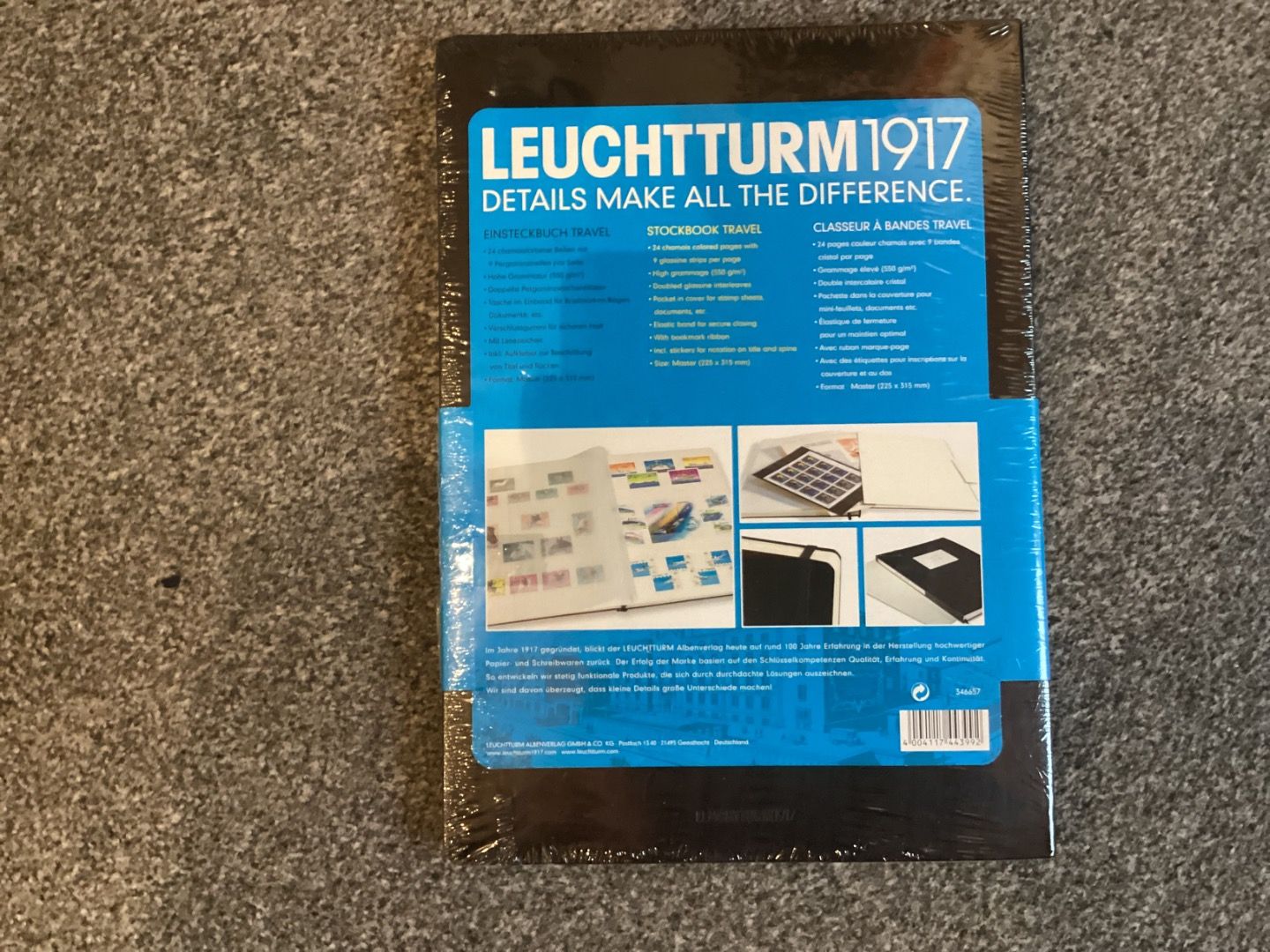 Leuchtturm Einsteckbuch Travel .Farbe schwarz. Neu, unbenutzt in Originalverpackung aus Lagerbestand. 24 Seiten mit 9 Pergaminstreifen pro Seite+ Pergaminzwischenblätter. Zusätzliche Tasche im Einband für Briefmarken- Bögen, Dokumente etc. Verschlussgummi für sicheren Halt und Transport. Sie erhalten den abgebildeten Artikel.Mehrfach bestellen,nur einmal Porto.