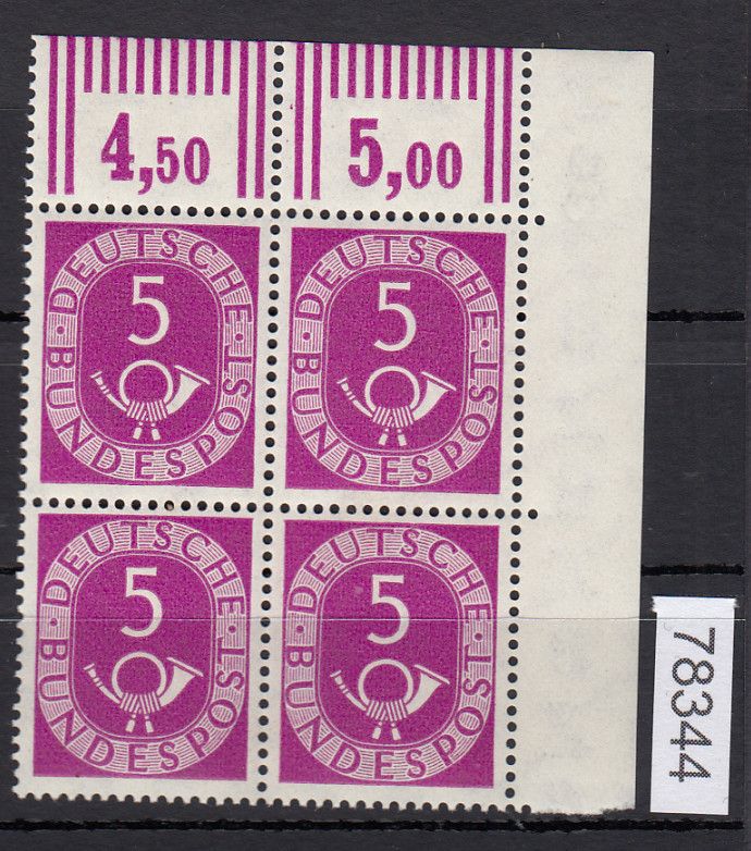 Bund 1951, Mich.-Nr.: 125 ** Eckrand  4er.-Block  Ecke 2