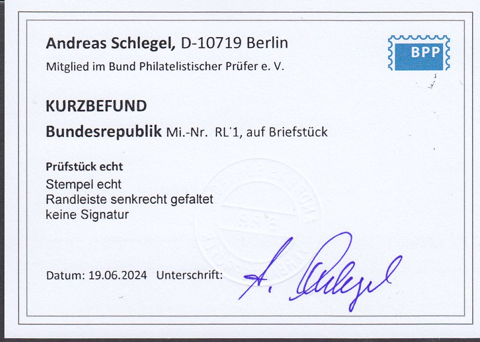 gestempelt geprüft mit Befund Andreas Schlegel an der Randleiste zur Marken nicht gefaltet jedoch die Randleiste selbst gefaltet da diese um den Brief geklebt wurde Sie bekommen den abgebildeten Artikel