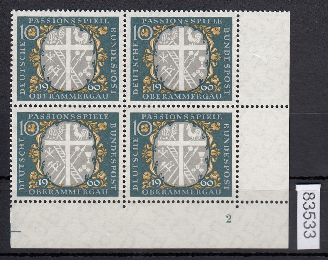 Bund 1960, Mich.-Nr.: 329 ** FN 2 Eckrand  4er.-Block
