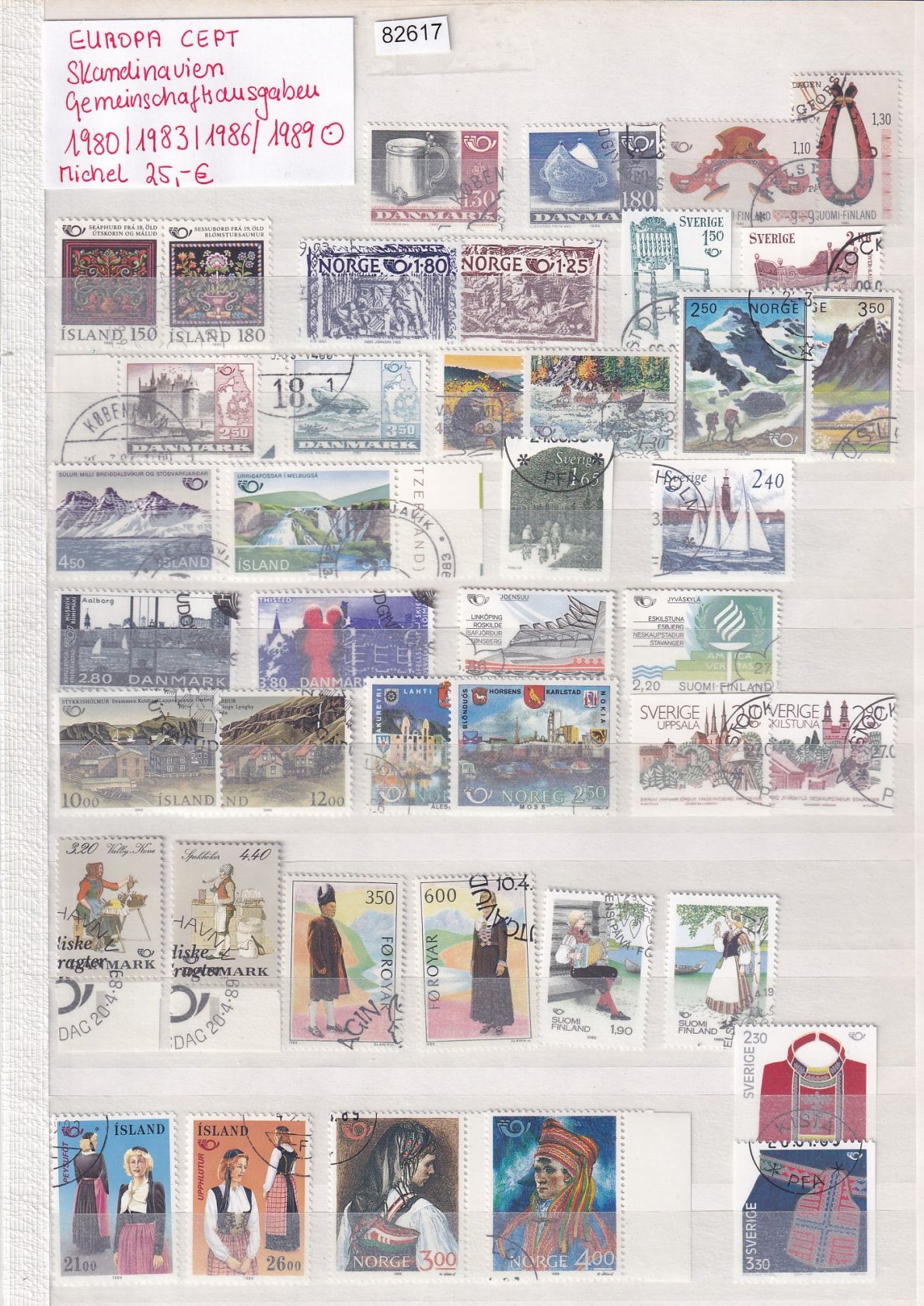 CEPT Skandinavien Gemeins.-ausgaben 1980, 83, 86 + 1989 gestempelt komplett