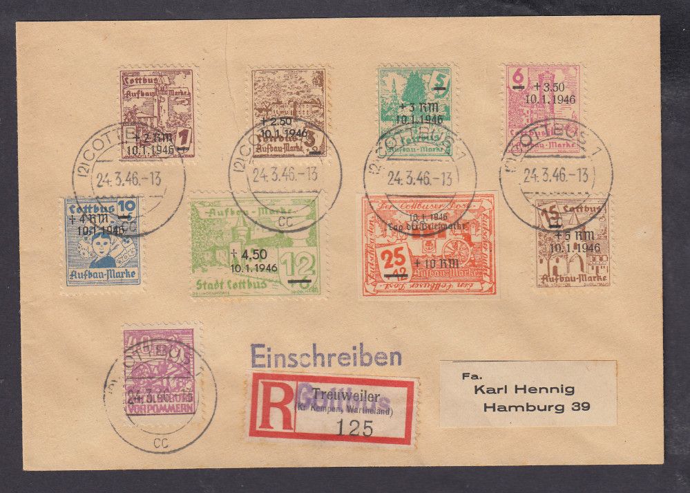 Cottbus, Mich.-Nr.: 25-31 + 34 gestempelt auf Brief
