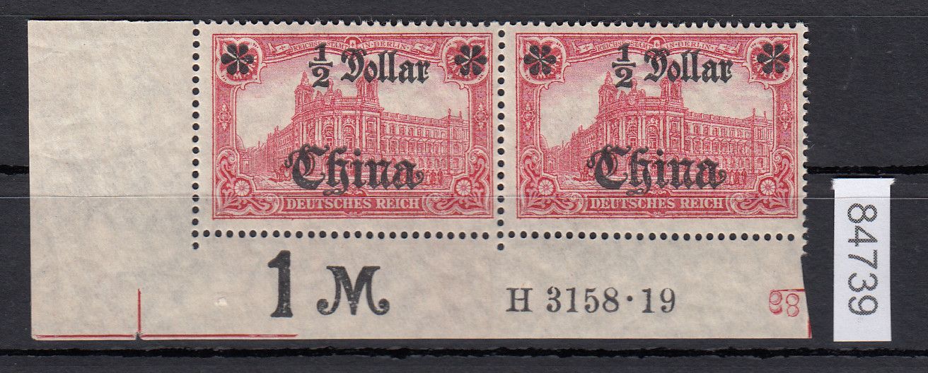 1/2 D. auf 1 M. Freimarke 1906/1919, waagerechtes Paar aus der linken unteren Bogenecke in postfrischer Erhaltung, HAN ,,H 3158.19", geprüft Mansfeld BPP. Mi. 515,-€.