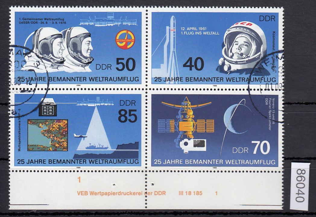 DDR 1986, Mich.-Nr.: 3005-3008  gestempelt DV  FNr. 1   Eckrand  Druckvermerk