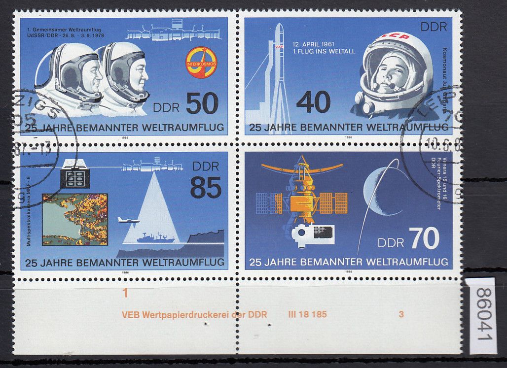DDR 1986, Mich.-Nr.: 3005-3008  gestempelt DV  FNr. 3   Eckrand  Druckvermerk