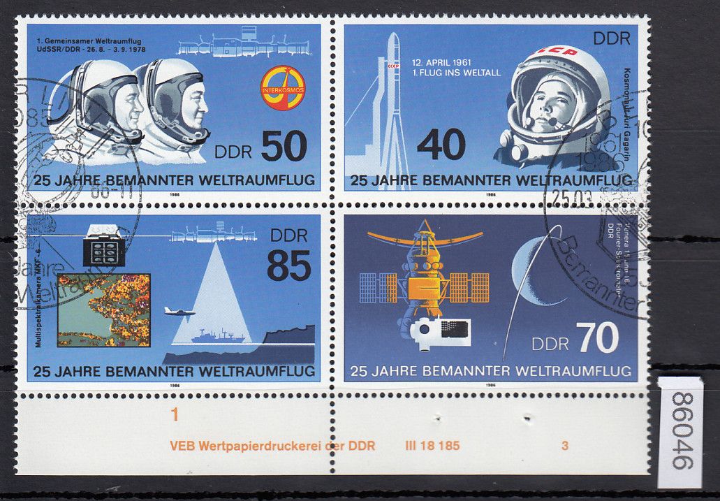DDR 1986, Mich.-Nr.: 3005-3008  gestempelt DV  FNr. 3   Eckrand  Druckvermerk