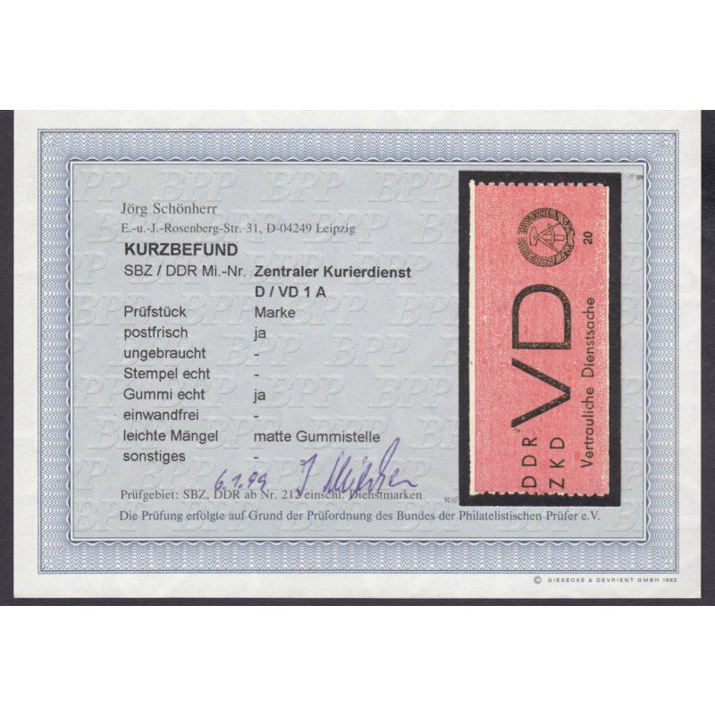 DDR Dienst D 1965, Mich.-Nr.: D 1 A **  geprüft  Befund  bitte lesen