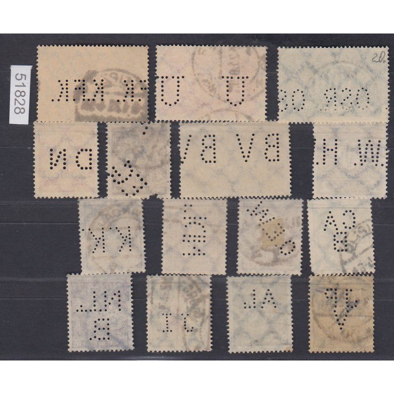 Wir lösen eine große Sammlung Perfins / Lochungen auf (ca. 20,000 Stk) hierraus erhalten Sie die im Bild zu sehen Marken. Erhaltung entnehmen Sie bitte dem Bild. Weitere Artikel im Shop und der Kategorie "Firmenlochungen, Perfins " Sie bekommen den abgebildeten Artikel