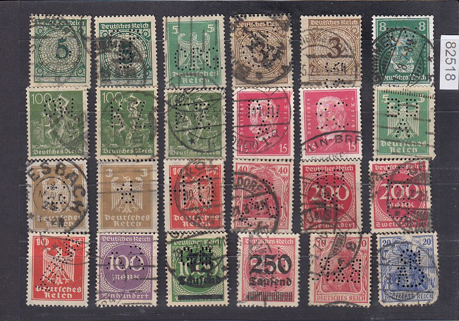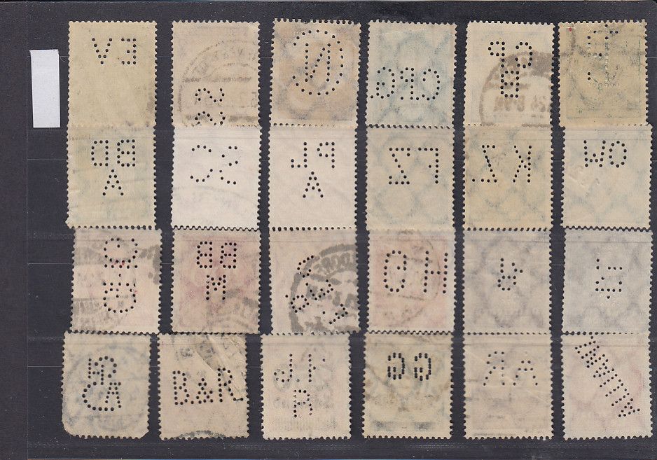 Wir lösen eine große Sammlung Perfins / Lochungen auf (ca. 20,000 Stk) hierraus erhalten Sie die im Bild zu sehen Marken. Erhaltung entnehmen Sie bitte dem Bild. Weitere Artikel im Shop und der Kategorie "Firmenlochungen, Perfins " Sie bekommen den abgebildeten Artikel