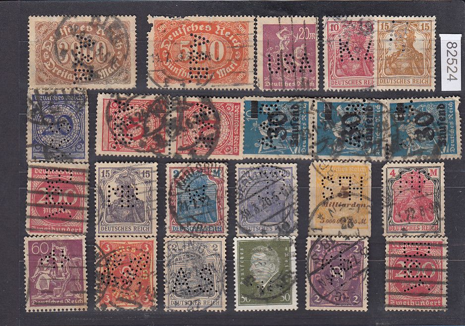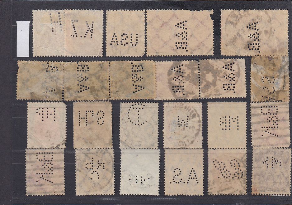 Wir lösen eine große Sammlung Perfins / Lochungen auf (ca. 20,000 Stk) hierraus erhalten Sie die im Bild zu sehen Marken. Erhaltung entnehmen Sie bitte dem Bild. Weitere Artikel im Shop und der Kategorie "Firmenlochungen, Perfins " Sie bekommen den abgebildeten Artikel