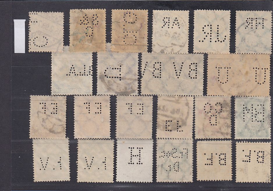 Wir lösen eine große Sammlung Perfins / Lochungen auf (ca. 20,000 Stk) hierraus erhalten Sie die im Bild zu sehen Marken. Erhaltung entnehmen Sie bitte dem Bild. Weitere Artikel im Shop und der Kategorie "Firmenlochungen, Perfins " Sie bekommen den abgebildeten Artikel