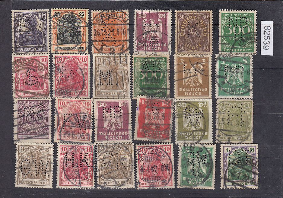 Wir lösen eine große Sammlung Perfins / Lochungen auf (ca. 20,000 Stk) hierraus erhalten Sie die im Bild zu sehen Marken. Erhaltung entnehmen Sie bitte dem Bild. Weitere Artikel im Shop und der Kategorie "Firmenlochungen, Perfins " Sie bekommen den abgebildeten Artikel