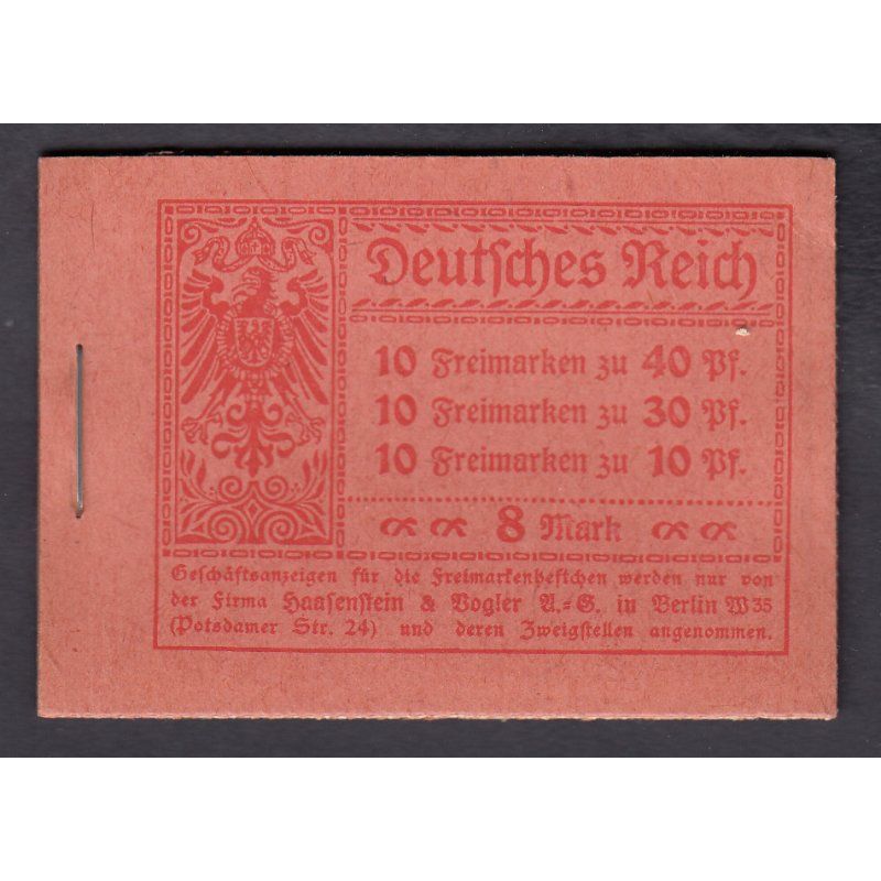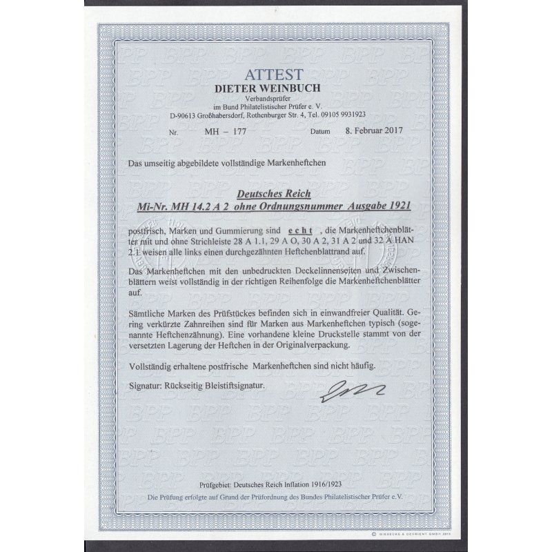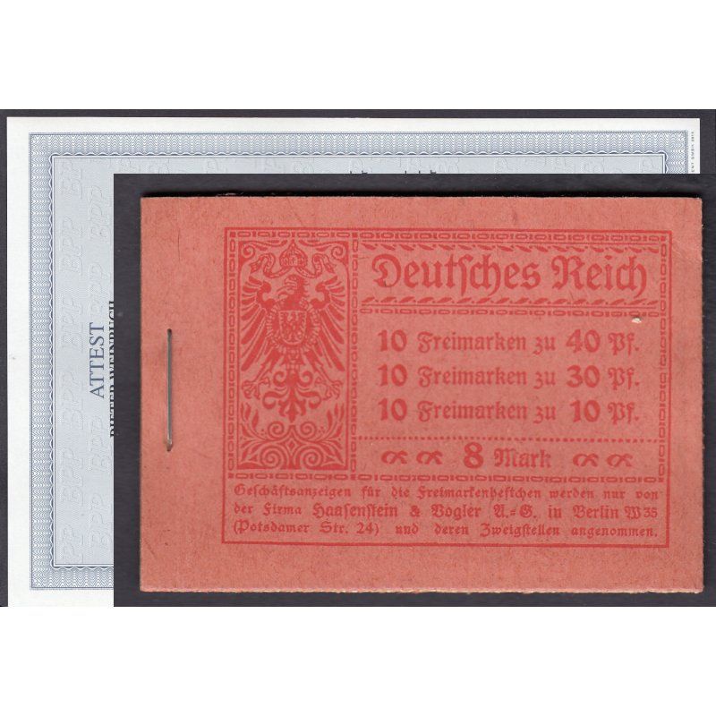 1921, Germania, postfrisches Markenheftchen zu 8 Mark ohne ONr., aus zuvor verschlossenen Originalpaketen, gepr. Weinbuch mit einwandfreien Fotoattest Mi. 500,-- Sie bekommen den abgebildeten Artikel