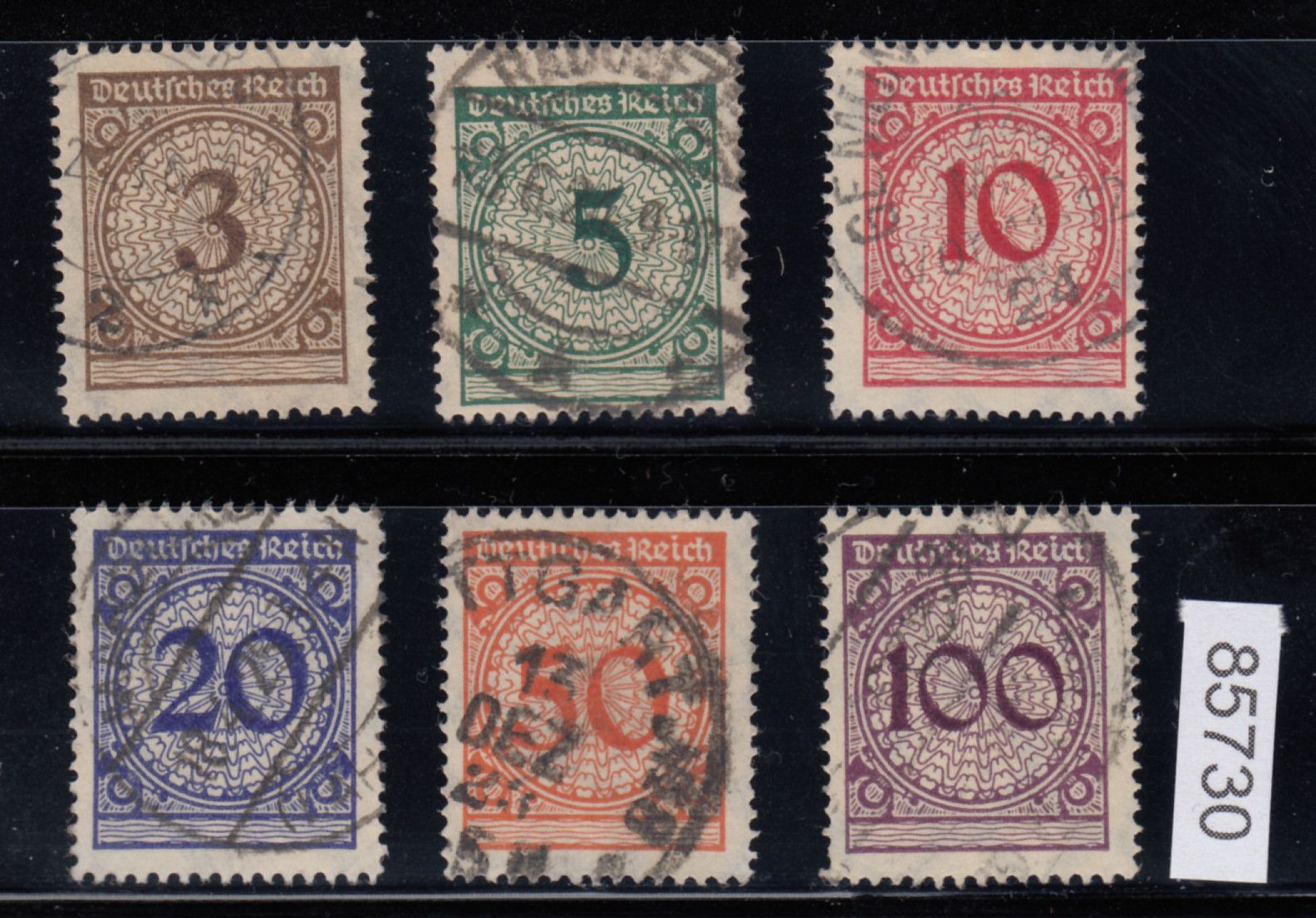 DR 1923, Mich.-Nr.: 338-43 gestempelt   HT  "Sprung"