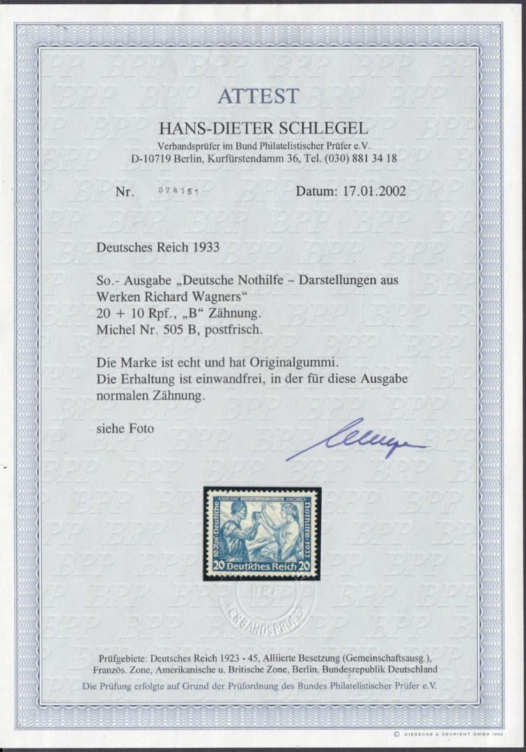 DR 1933, Mich.-Nr.: 505 B ** geprüft  Attest