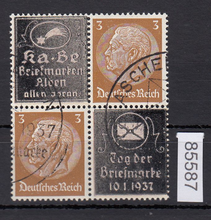 DR 1937, Mich.-Nr.: Hindenburg Überdruck 4er-Block gestempelt  K+3+3+T