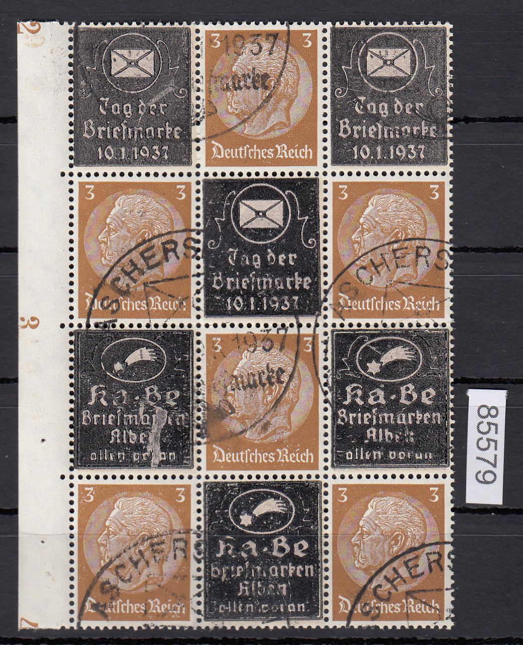 DR 1937, Mich.-Nr.: Hindenburg Zdr. senkr. Überdruck gestempelt  T-3-T/3-T-3/K-3K/3-K-3