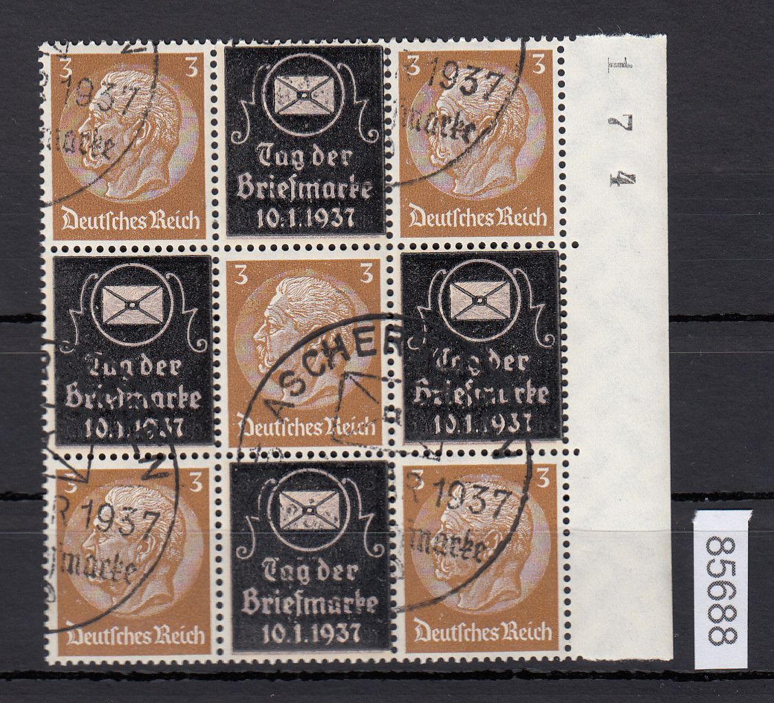 DR 1937, Mich.-Nr.: P-W 2+4+2  Hindenburg Zdr. waag. Überdruck gestempelt  3-T3/T-3-T/3-T-3