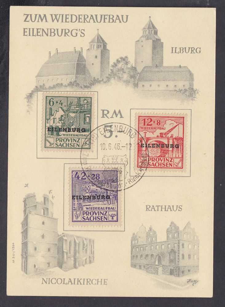 Eilenburg, Mich.-Nr.: IV-VI gestempelt auf Karte " Wiederaufbau Einlenburg "