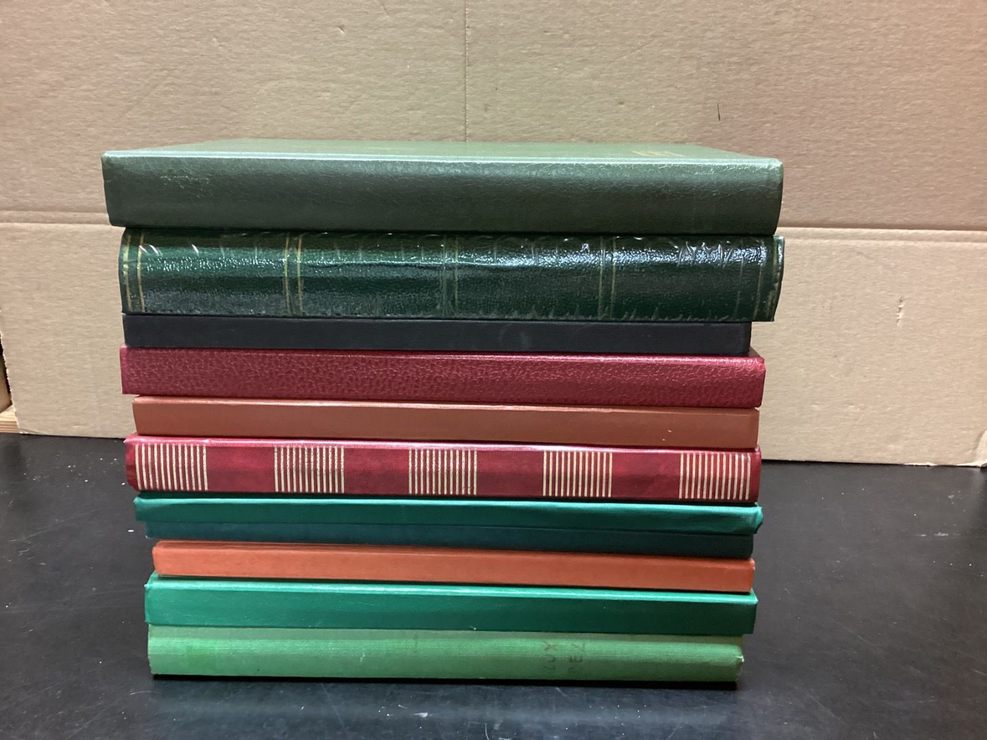 Eine Kiste voller Einsteckalben. 11 Stück, Seiten weiß.Alben mit verschiedenen Seitenanzahlen.Geteilt oder ungeteilt. Gebraucht mit kleinen Schönheitsfehlern. Klebespuren,Stoßkanten Druckstellen, Aufkleber (auch auf Pergastreifen), Risse im Einband. Kugelschreiberbeschriftung mit Michelnummern.Sie erhalten den abgebildeten Artikel.