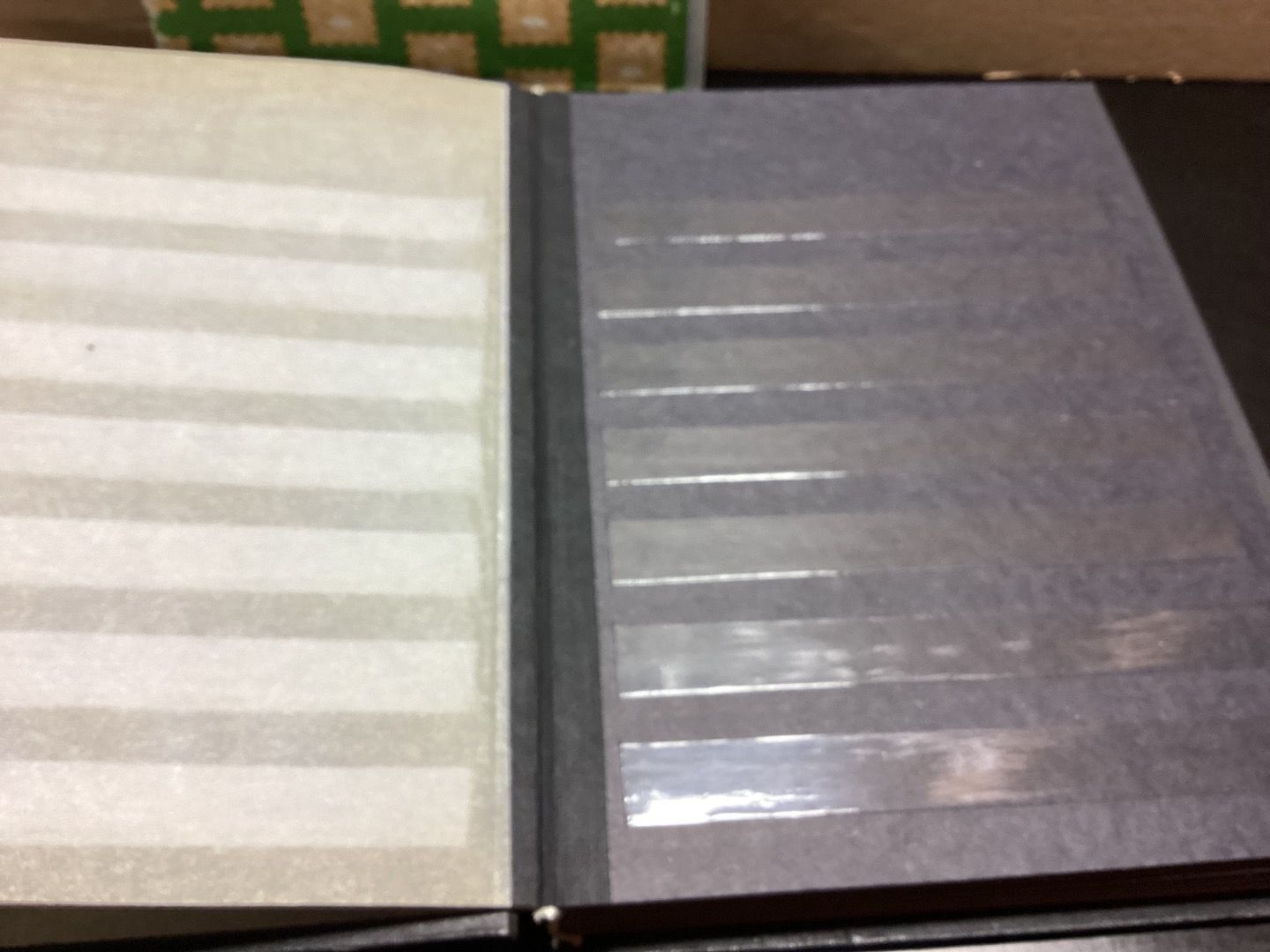 Eine Kiste voller Einsteckalben. 6 Stück, Seiten schwarz. Alben mit verschiedenen Seitenanzahlen.Geteilt oder ungeteilt. Gebraucht mit kleinen Schönheitsfehlern. Klebespuren,Stoßkanten Druckstellen, Aufkleber .Sie erhalten den abgebildeten Artikel.