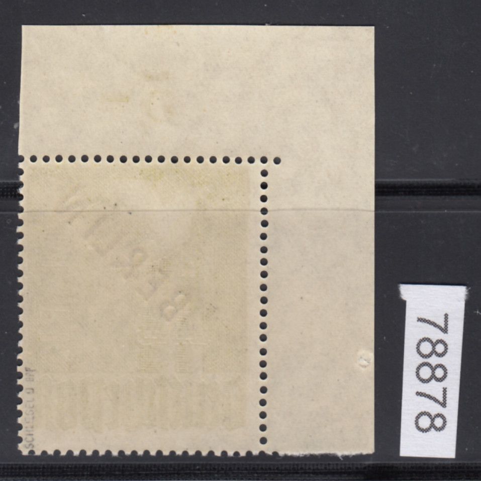 1948, 1  M. Schwarzaufdruck als postfrische Bogenecke oben links, Oberrand nicht durcgezähnt, ungefaltet in einwandfreier Qualität