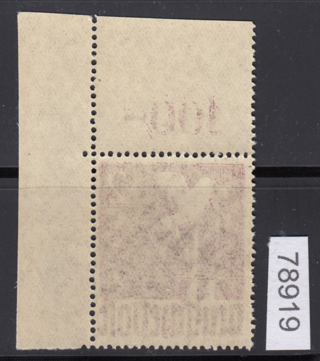1948, 2  M. Schwarzaufdruck als postfrische Bogenecke oben rechts, sehe breiter Oberrand  durchgezähnt, ungefaltet in einwandfreier Qualität