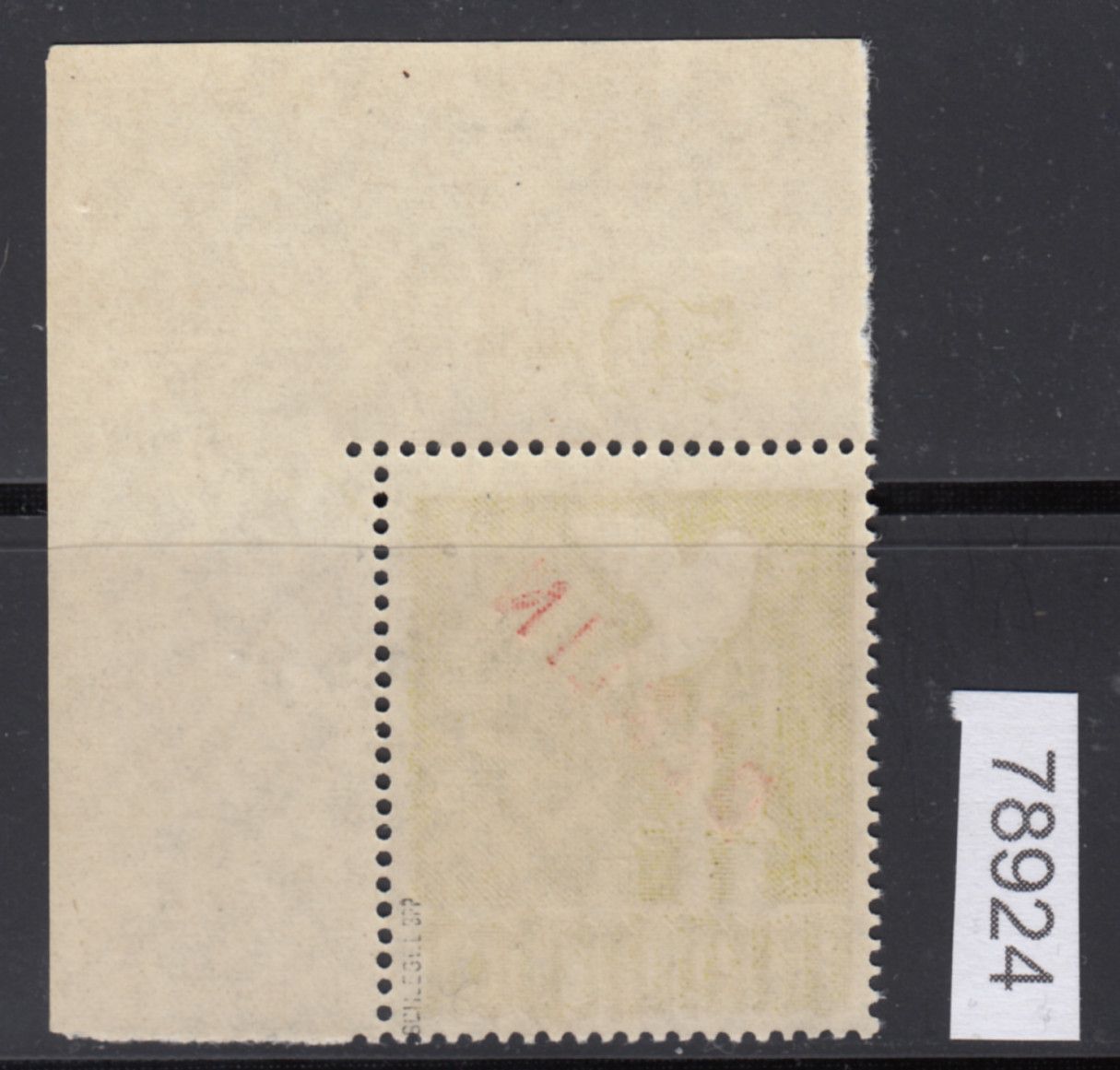 1949, 1 M. Rotaufdruck als postfrische Bogenecke oben rechts mit nicht durchgezähntem Oberrand, ungefaltet und in einwandfreier Qualität, gepr. Schlegel BPP.