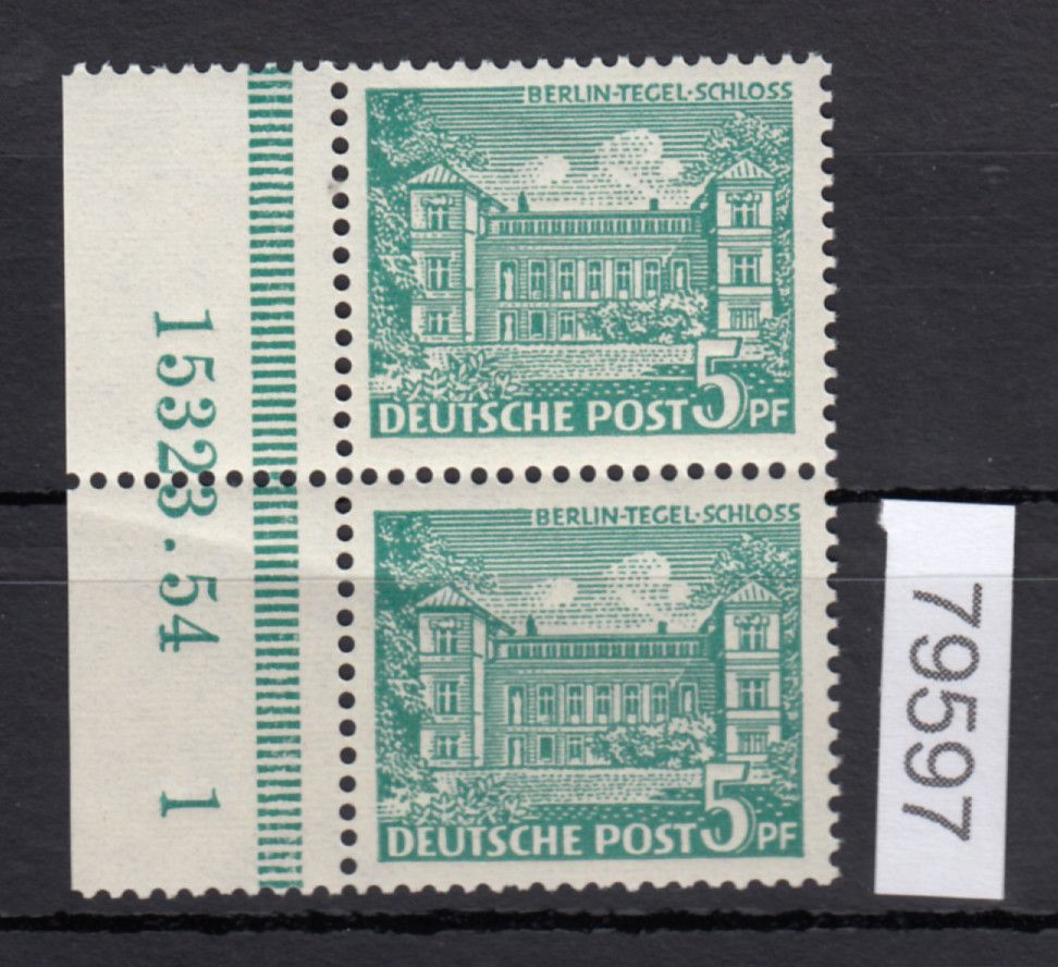 1949, 5 Pfg. Bauten I als postfrisches Paar vom linken Seitenrand mit HAN , ungefaltet und in einwandfreier Qualität im Michel völlig unter bewertet