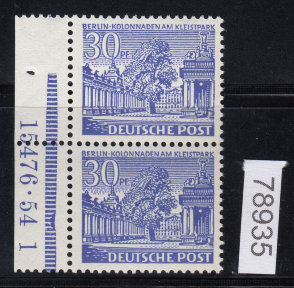 1949, 30 Pfg. Bauten I als postfrisches Paar vom linken Seitenrand mit der HAN 15476.54 1, ungefaltet und in einwandfreier Qualität im Michel völlig unter bewertet