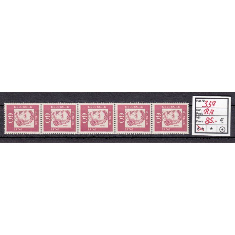 Bund 1961, Mich.-Nr.:R 357y ** RA 5er-Streifen