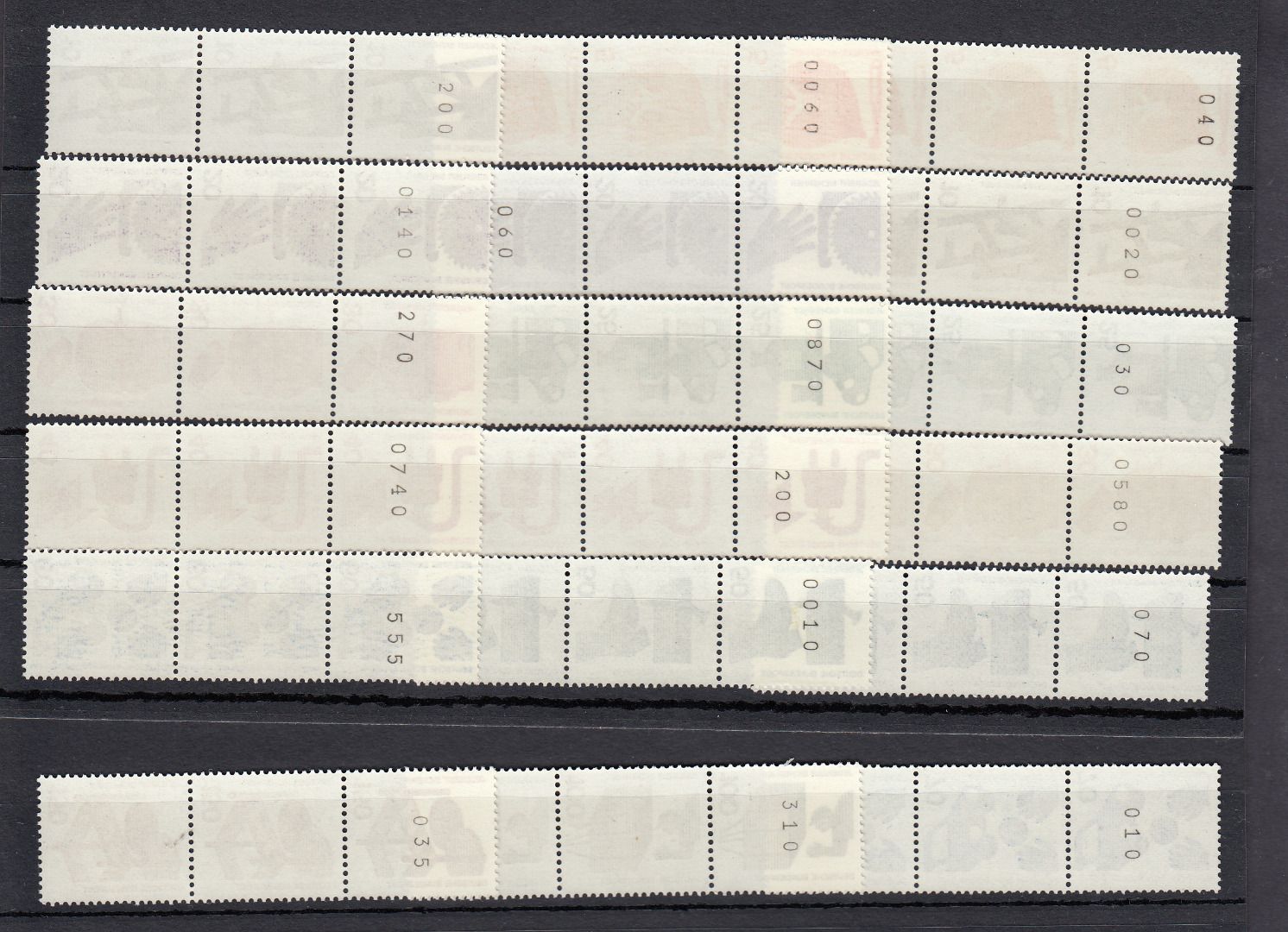 Bund 1971, Mich.-Nr.: R 694-703 a +773 a **  3er.Str.  alle Rollengr.  schw. Zählnr.
