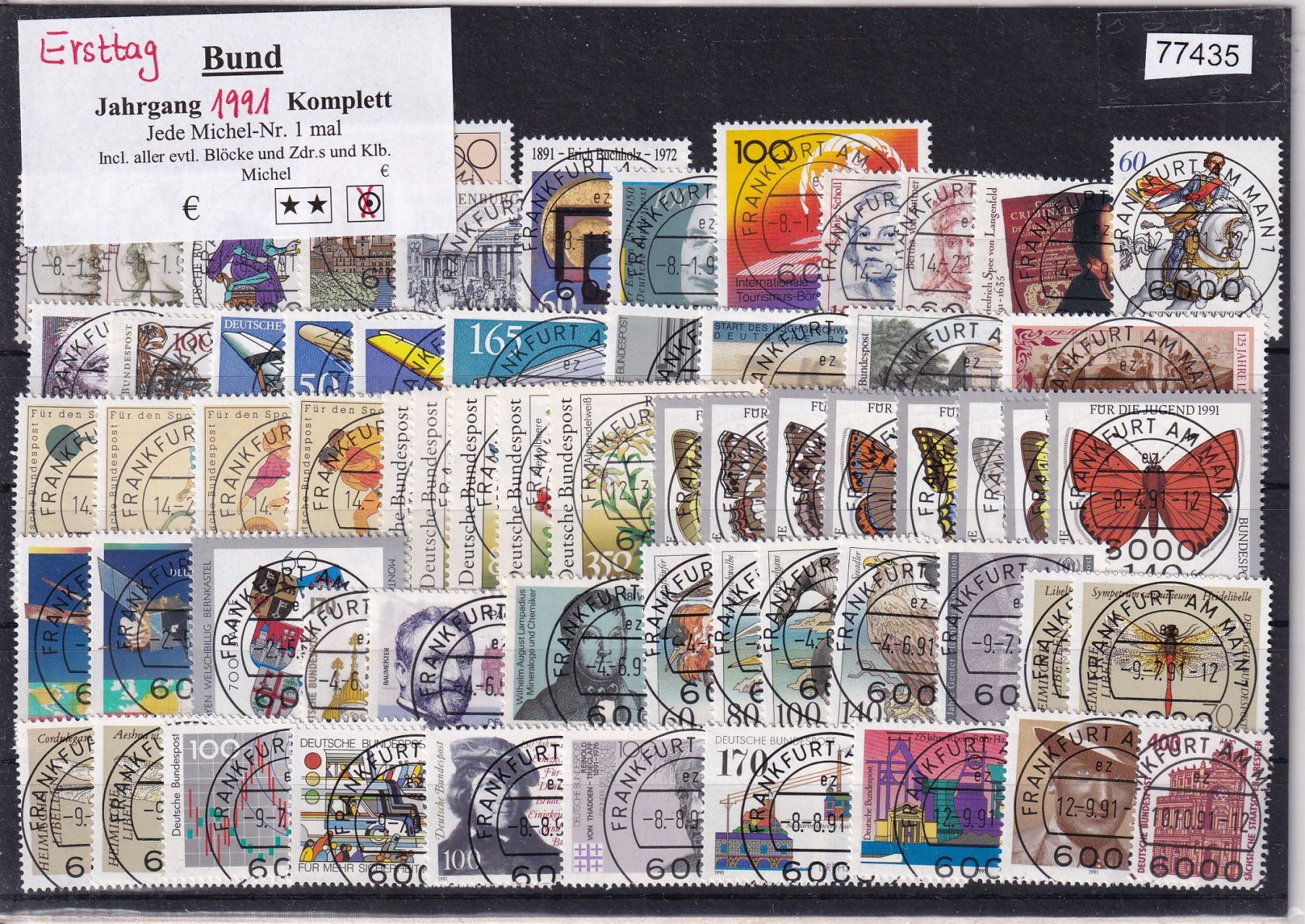 Bund 1991, Mich.-Nr.: 1488-1581 Gestempelt Komplett  LUXUS PLUS Zentrisch Ersttag