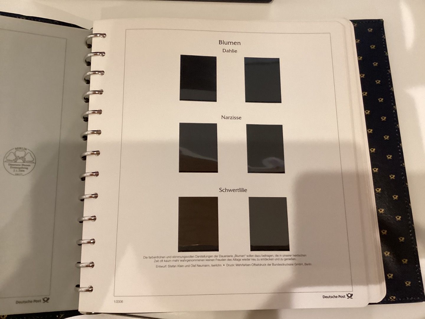 Alben der Deutschen Post mit Vordrucken, schwarze Klemmtaschen für Eckrandmarken postfrisch und gestempelt zusammen. Ohne Marken. Ringbinder + Kassette.Hochwertiges,lederähnliches Material . Stabile 13-Ring-Mechanik.Hersteller ist Leuchtturm. Sie erhalten den abgebildeten Artikel. Mehrfach bestellen, nur einmal Porto.