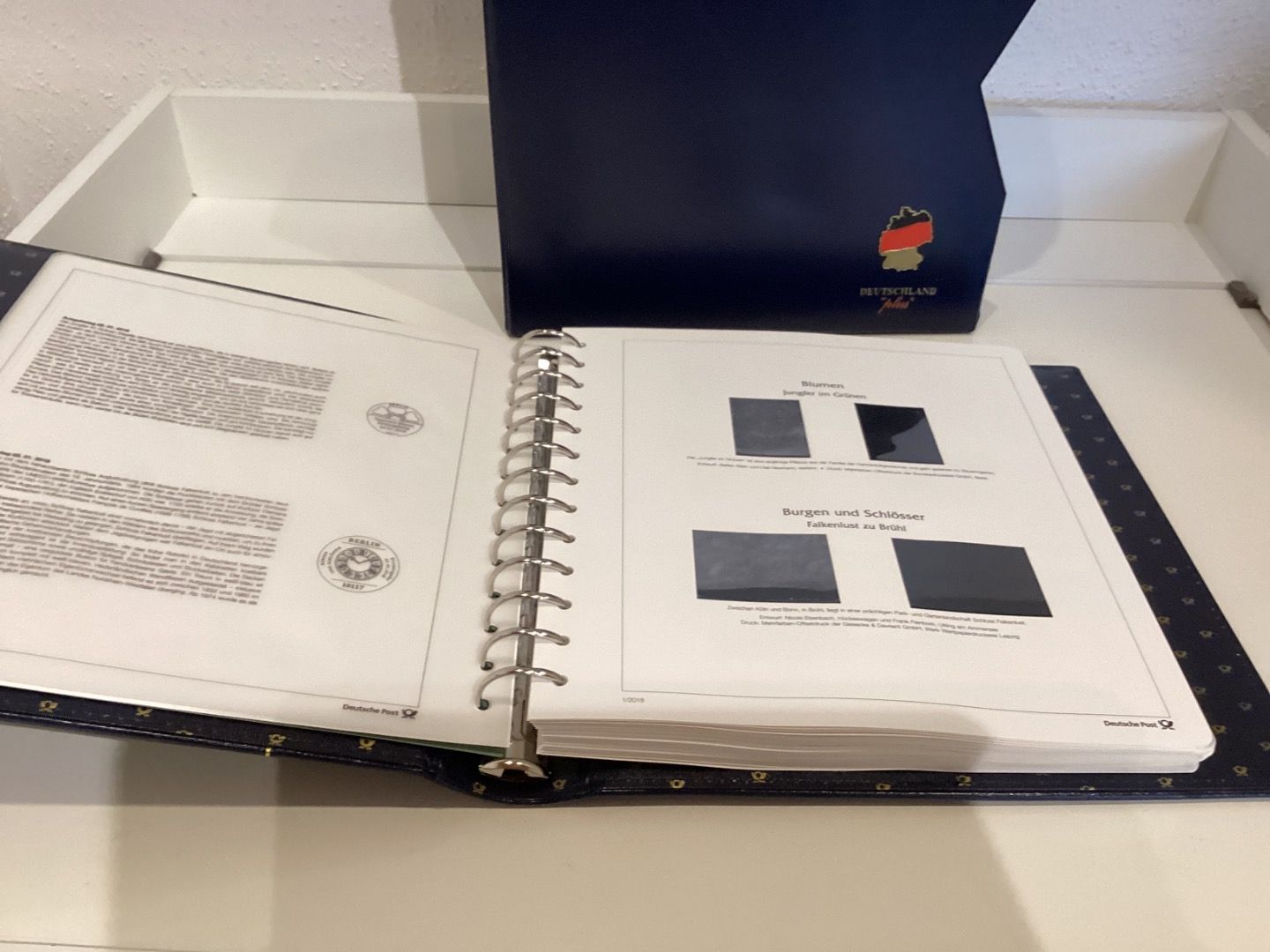 Alben der Deutschen Post mit Vordrucken, schwarze Klemmtaschen für Eckrandmarken postfrisch und gestempelt zusammen. Ohne Marken. Ringbinder + Kassette.Hochwertiges,lederähnliches Material . Stabile 13-Ring-Mechanik.Hersteller ist Leuchtturm. Sie erhalten den abgebildeten Artikel. Mehrfach bestellen, nur einmal Porto.