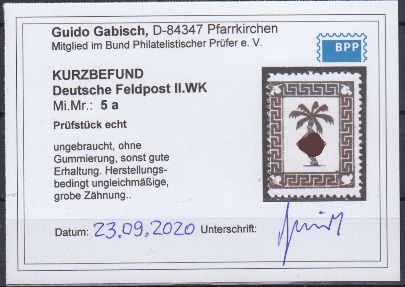 Tunis-Päckchenmarke 1943, ungebraucht ohne Gummi, sehr gute Erhaltung, geprüft Gabisch mit Befund "echt " Mi. 200,-
