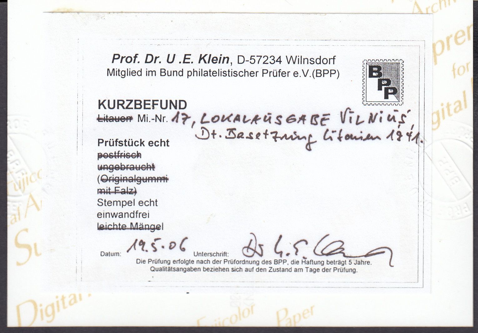Litauen , Mi.-Nr. 17 gestempelt  geprüft  Befund