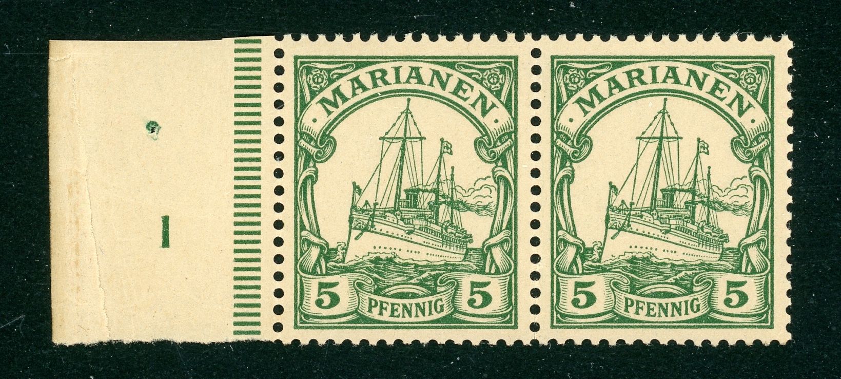 Marianen 8 (2) Postfrisch 5 Pfg. waager. li. Randpaar mit Pl.-Nr. 1