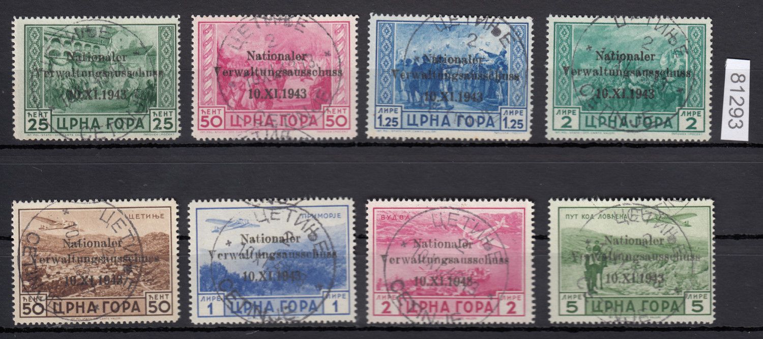 Montenegro, Mi.-Nr. 10-13 + 15-18 gestempelt geprüft Attest   "einwandfrei"