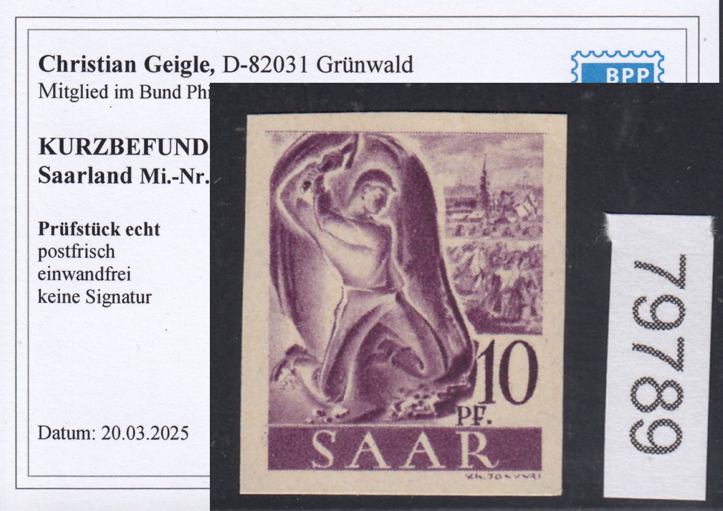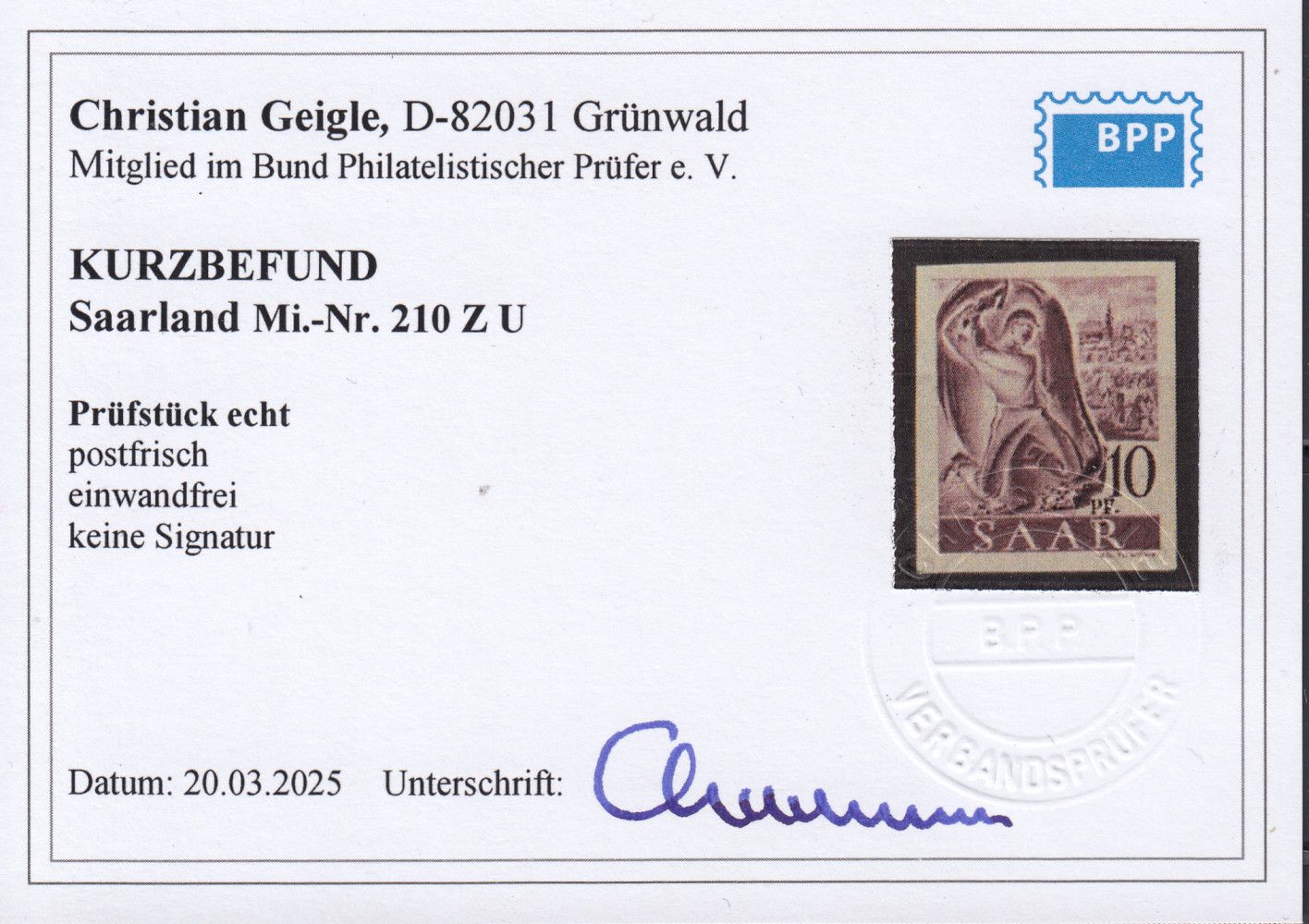 Saarland 1947 Mi. Nr. 210 Z U **   geprüft  Befund