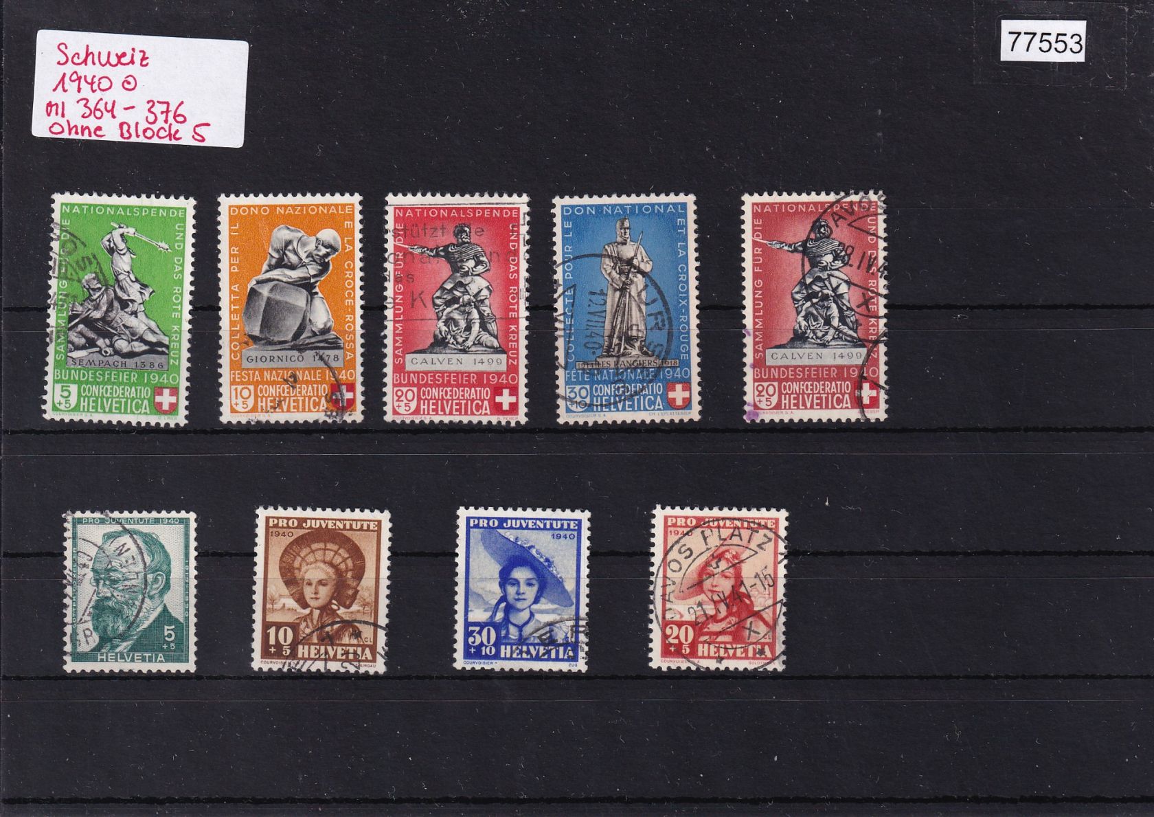 Schweiz 1940 : Mi.-Nr.: Komplett gestempelt  Ohne Block 5