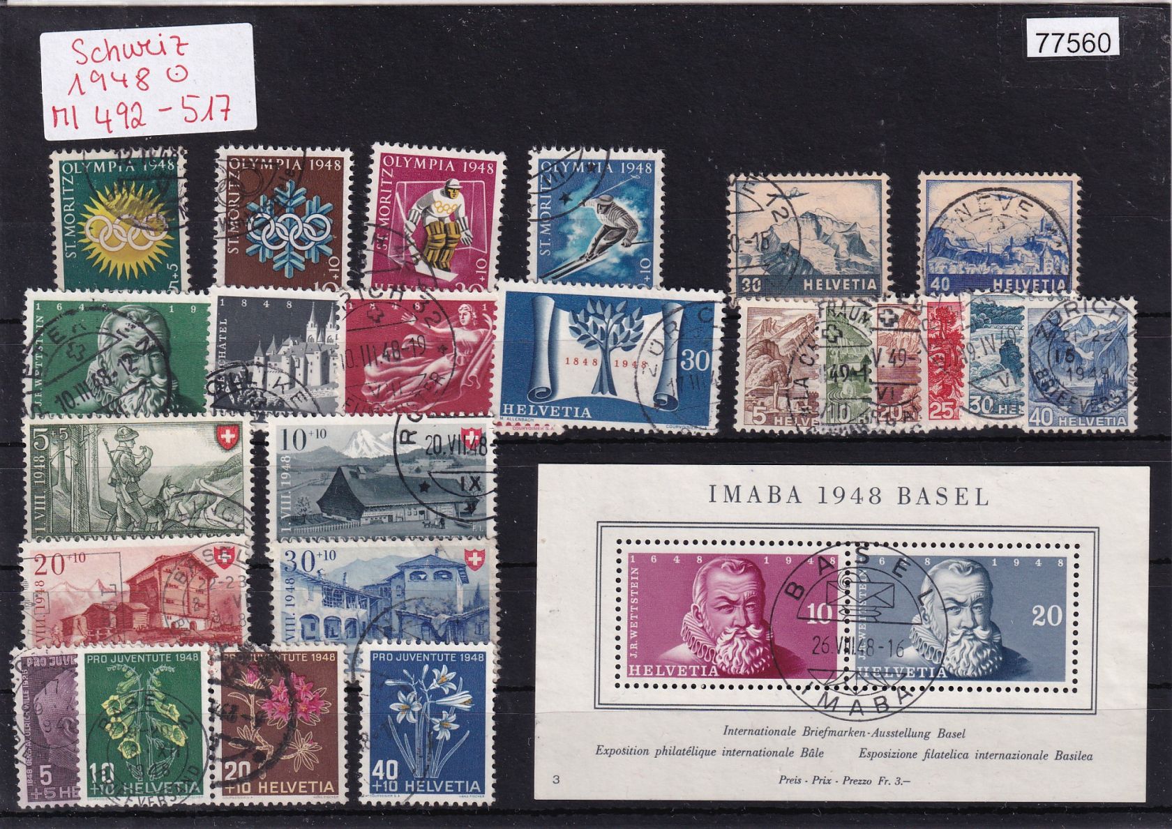 Schweiz 1948 : Mi.-Nr.: Komplett gestempelt